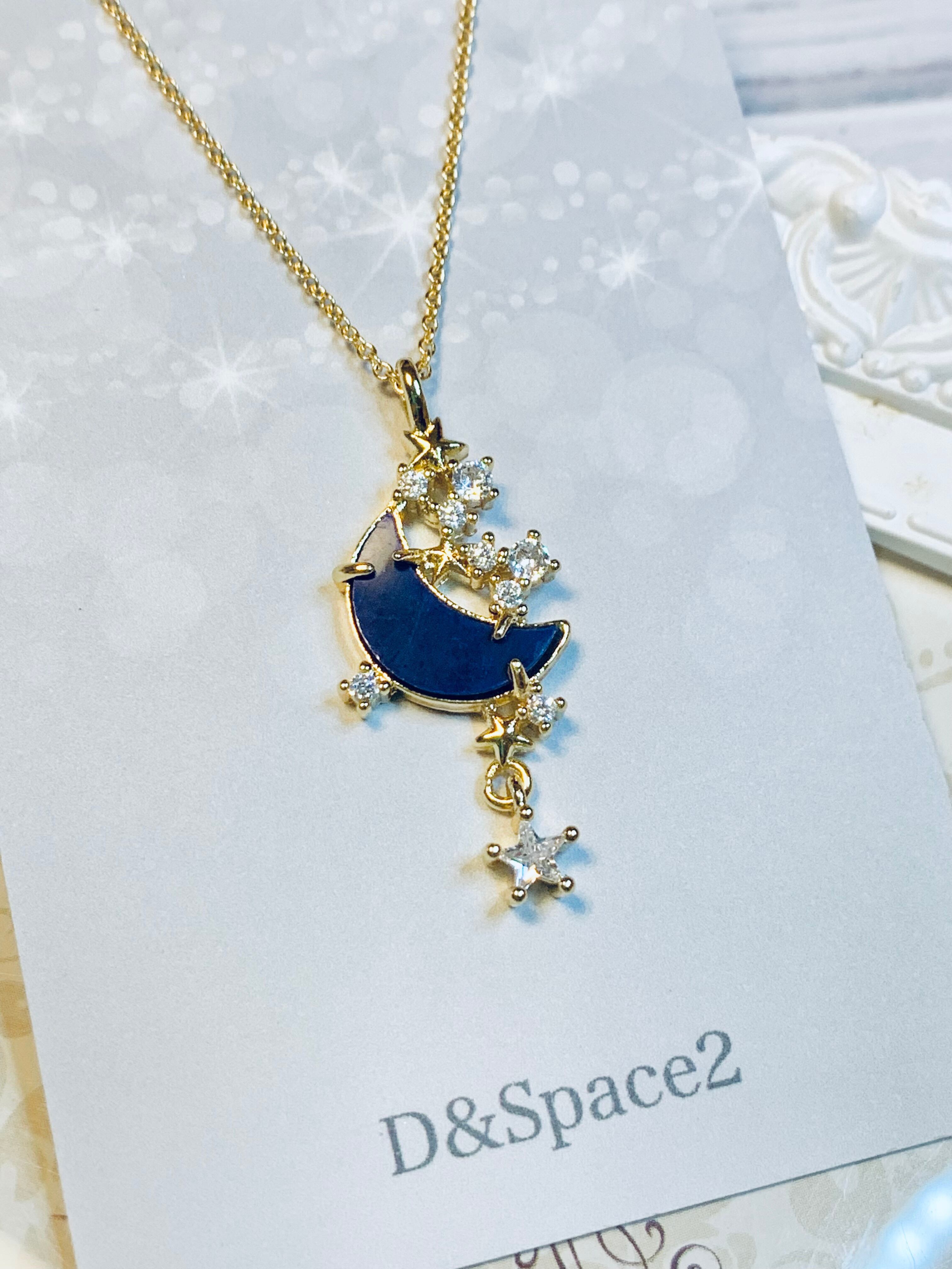 キュービックジルコニア付き月(ブルームーン)と星々のネックレスです。
