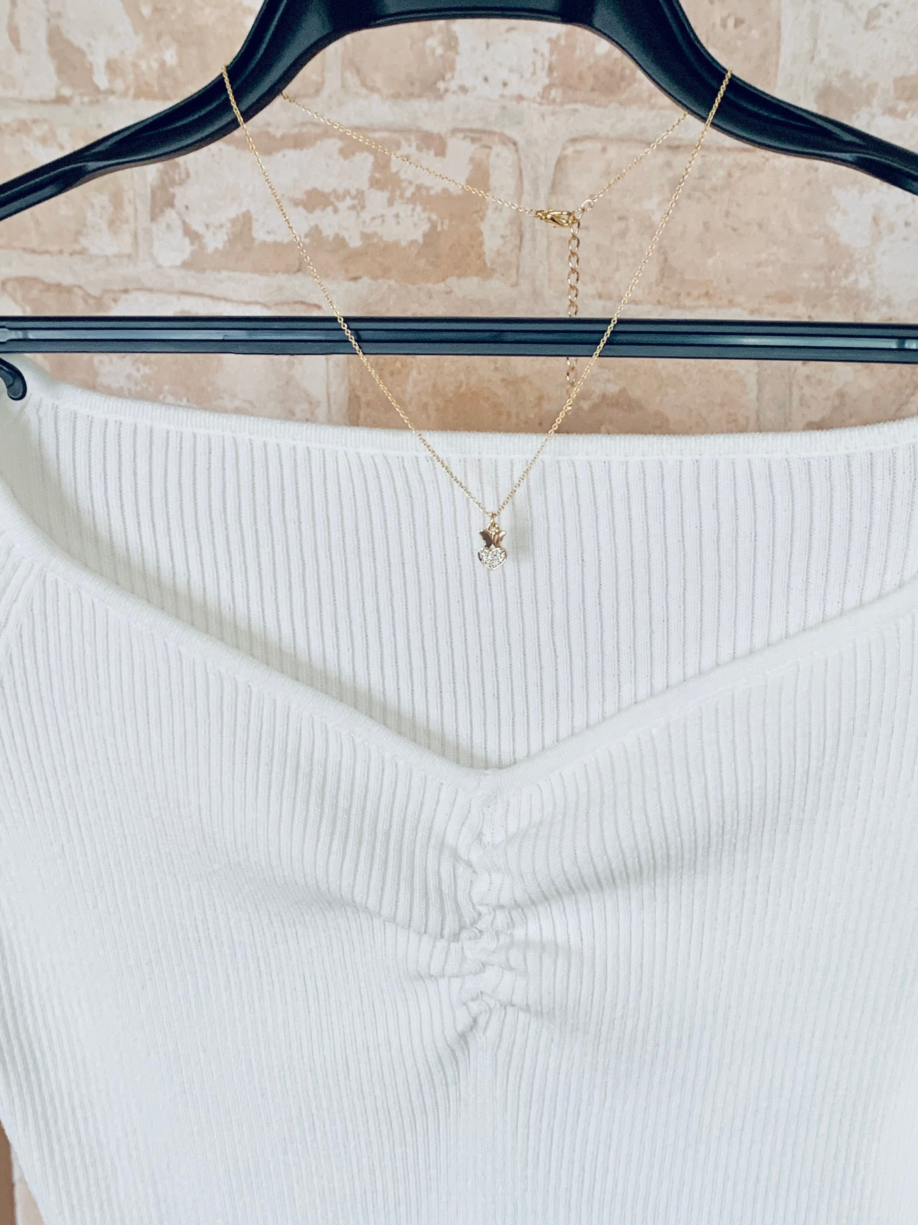 キュービックジルコニア付きのハート&バタフライ(ちょうちょ)モチーフのネックレスです。