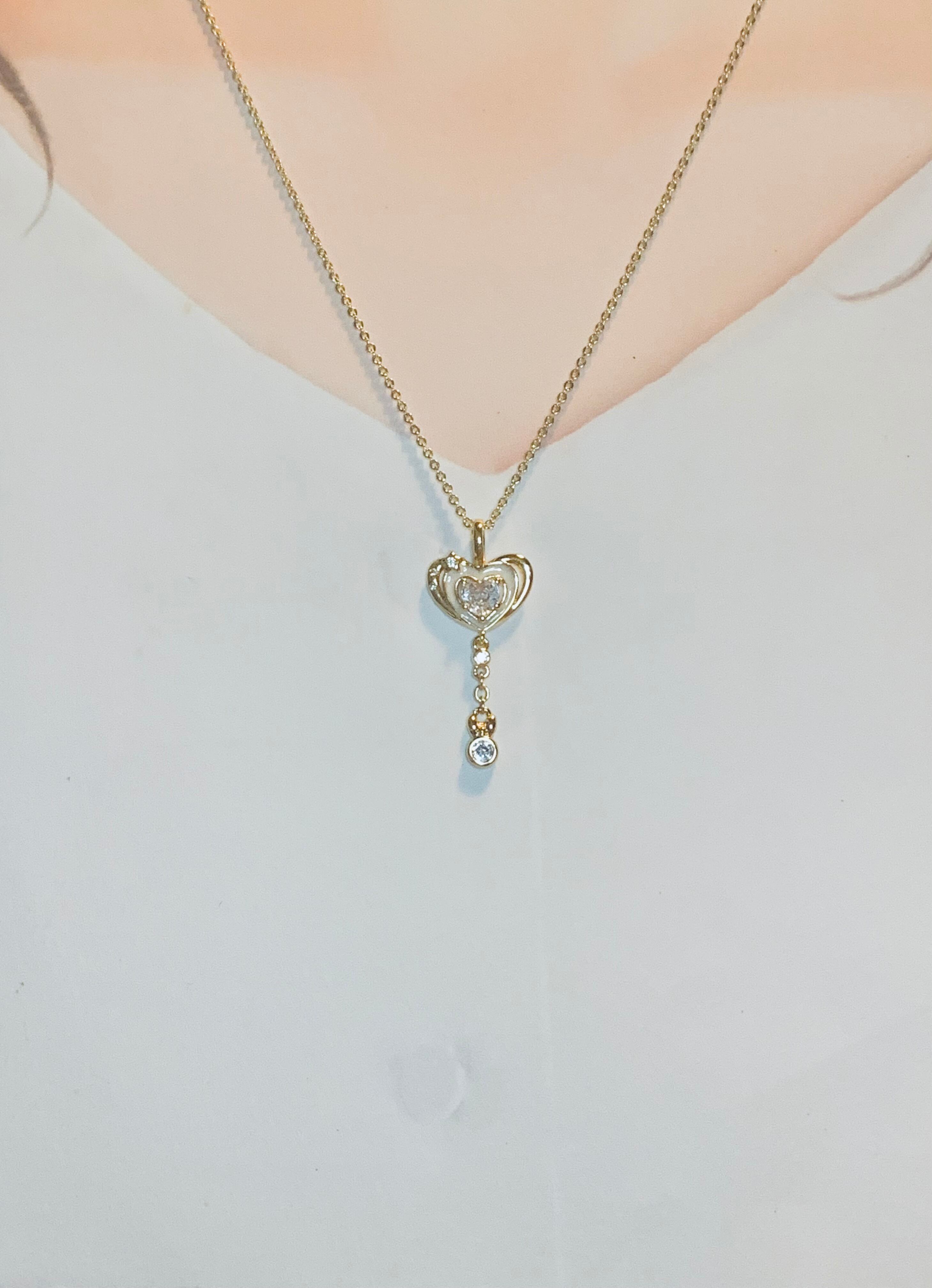 キュービックジルコニア付きハート型のネックレスです。