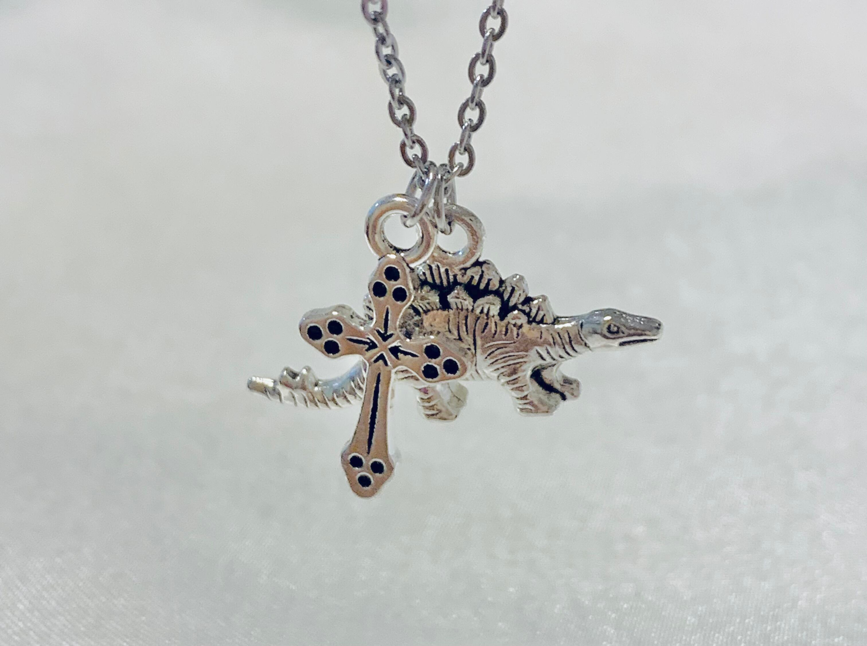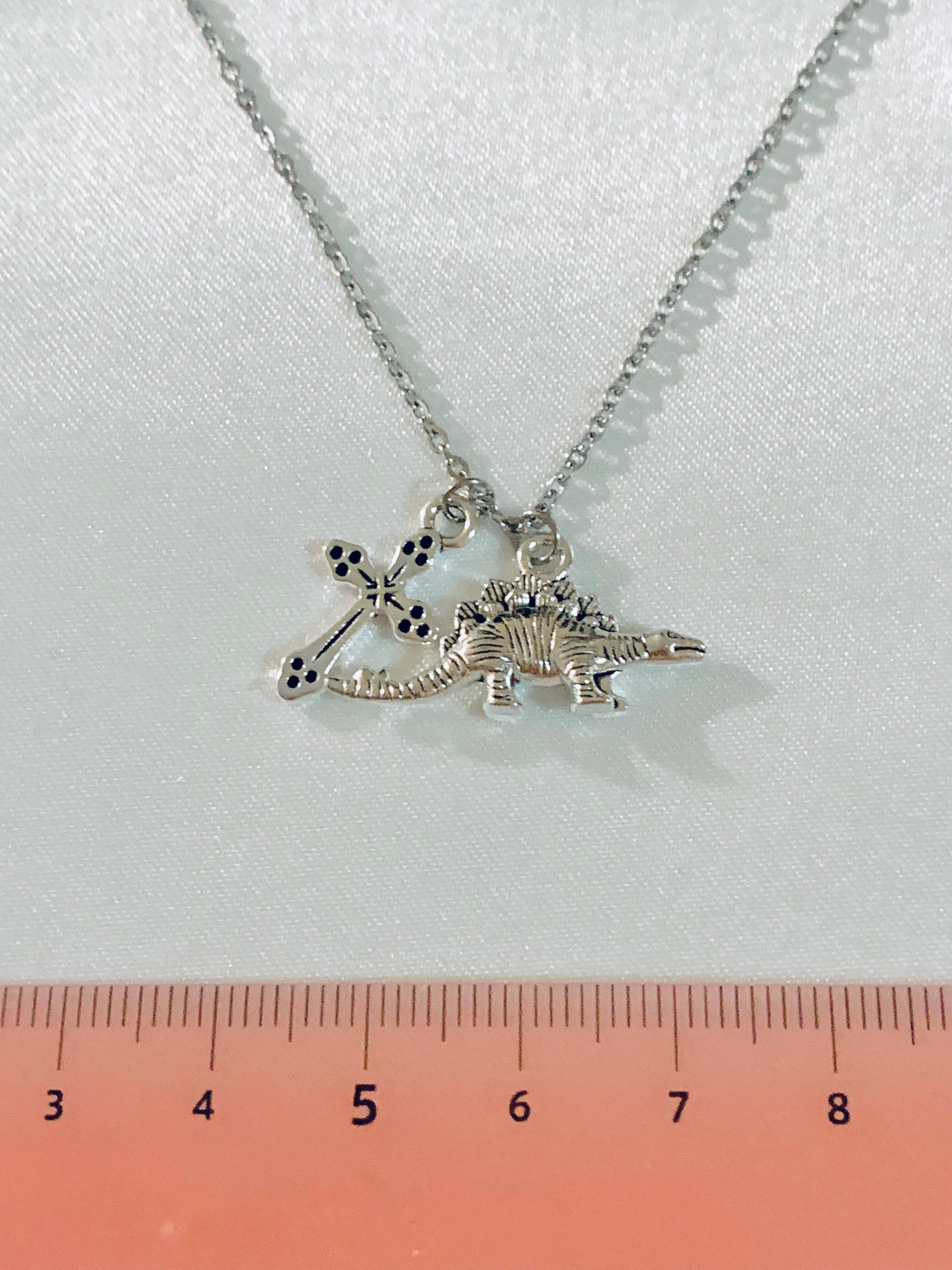カラーはアンティークシルバー。恐竜もクロス(十字架)も両面が同じデザインです。