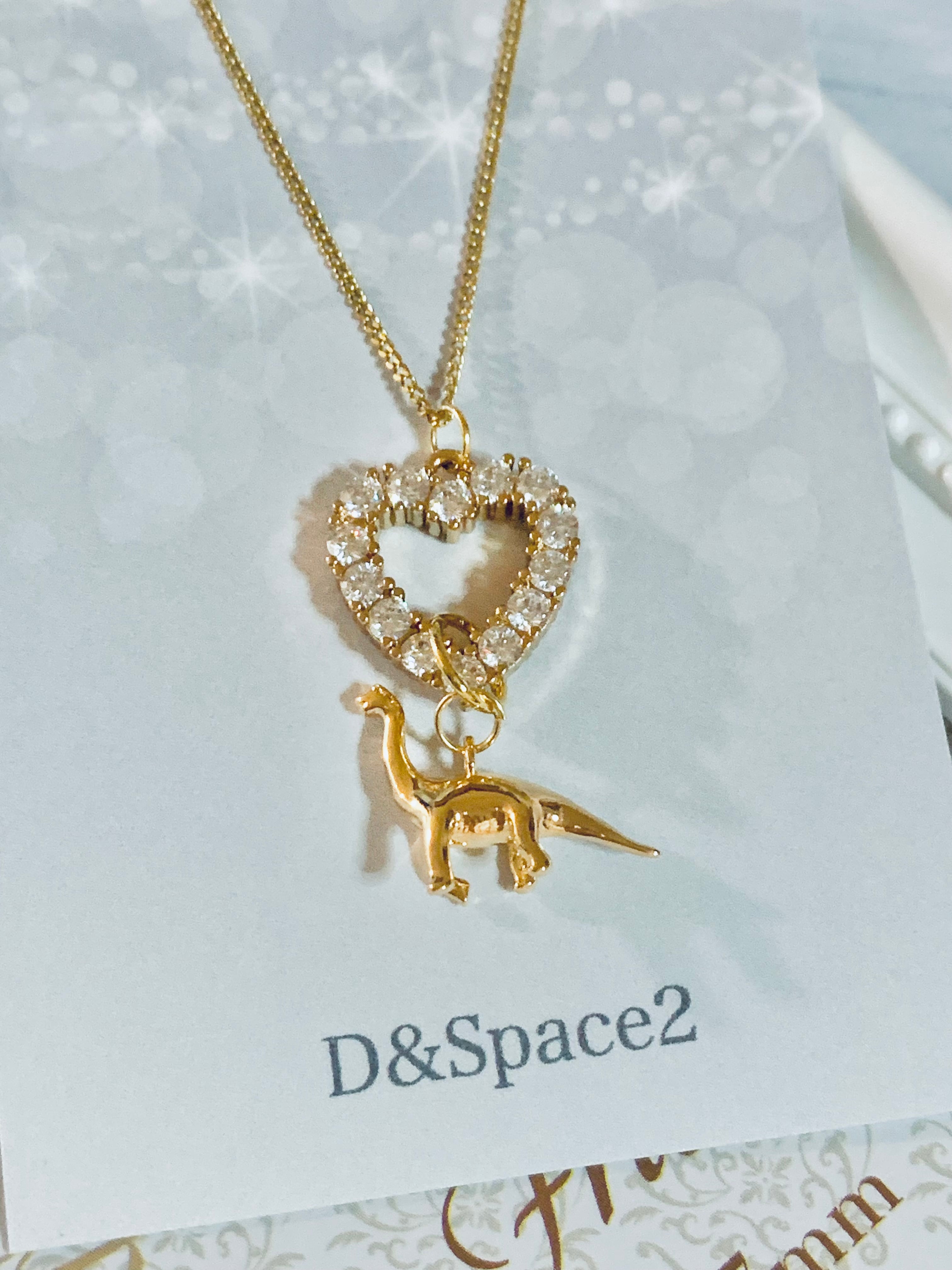 CZ付き 恐竜&ハートネックレス