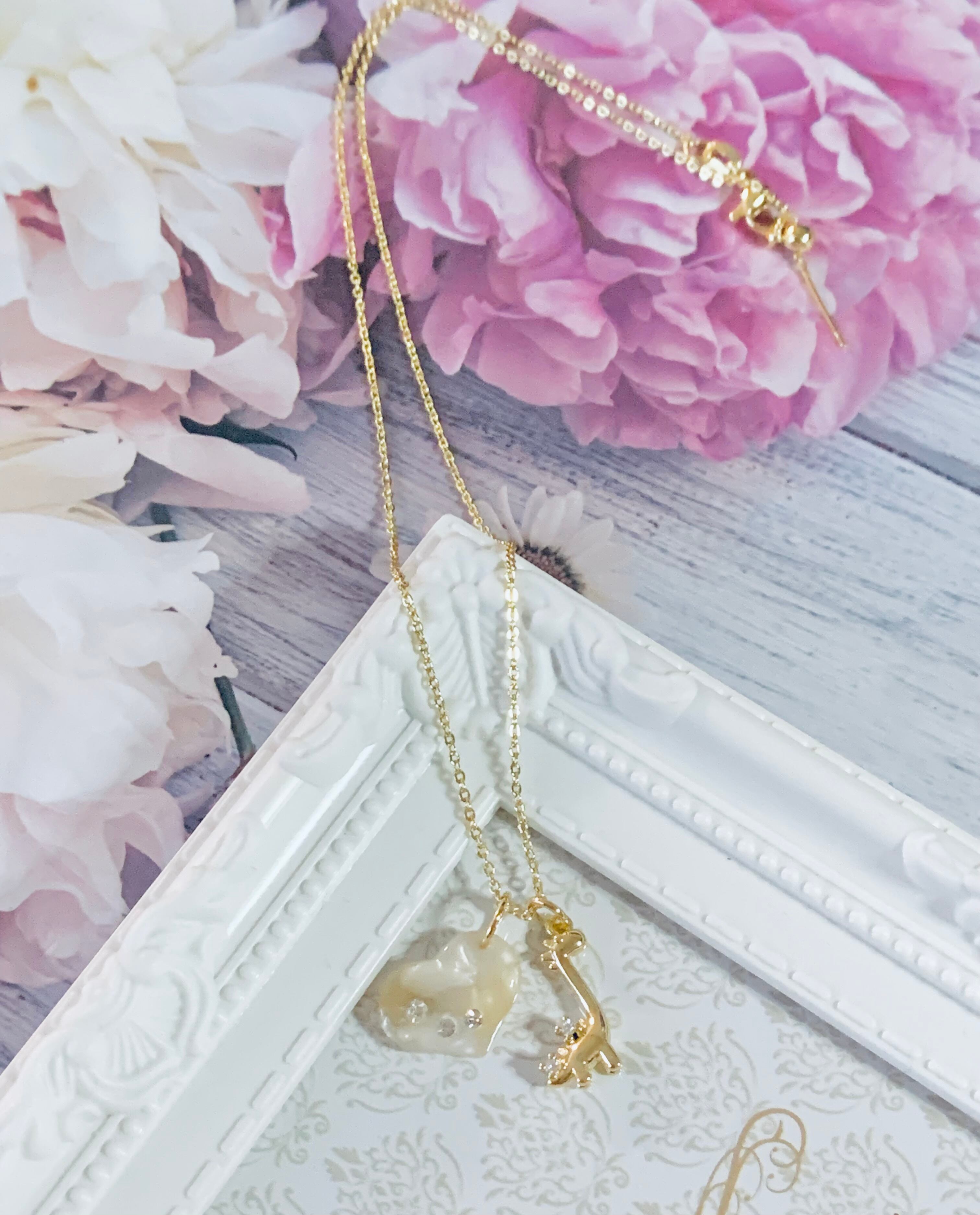 ハートチャーム付きの恐竜ネックレスです。