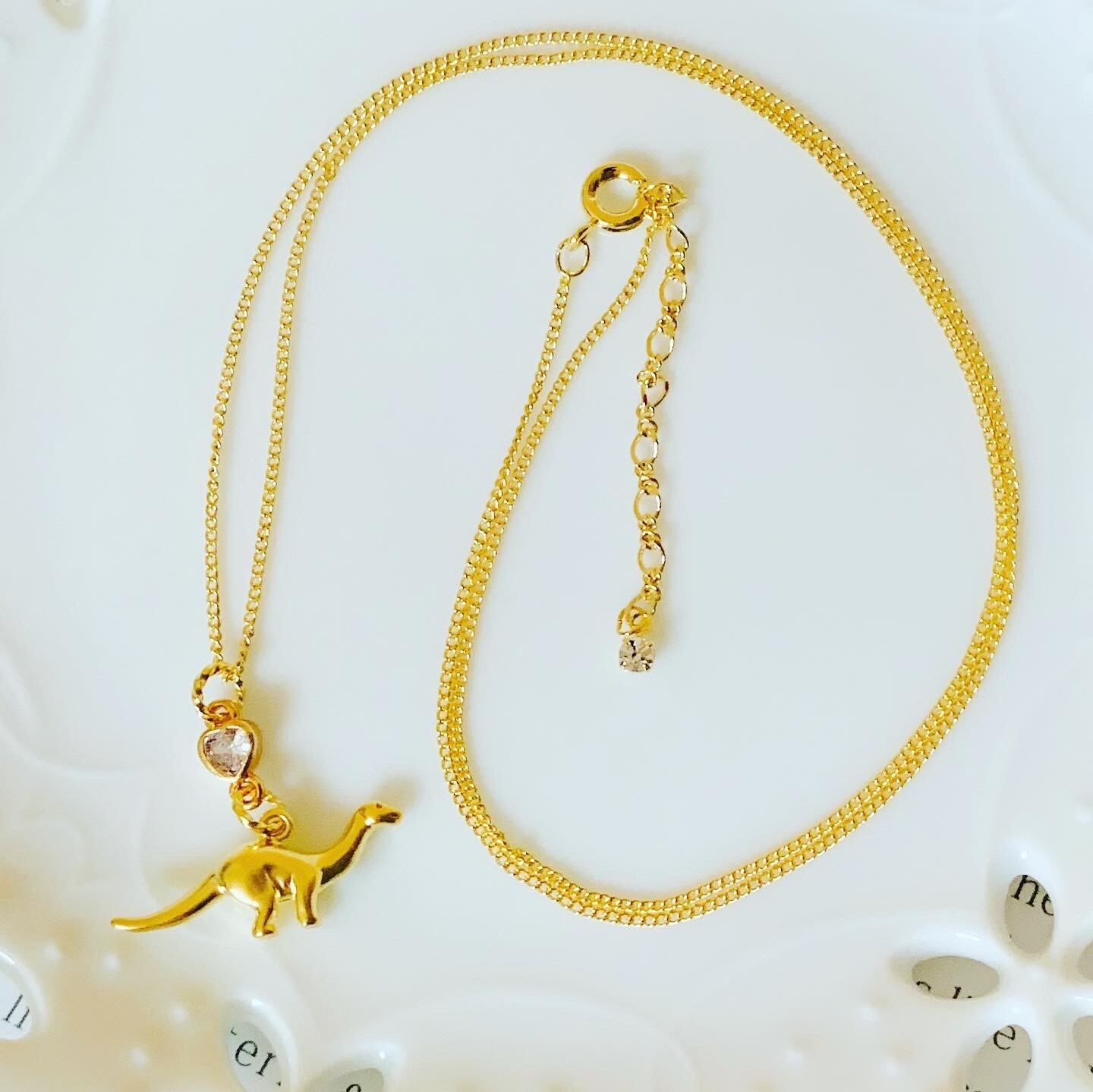 16kgp ハートチャーム付きの恐竜ネックレスです。