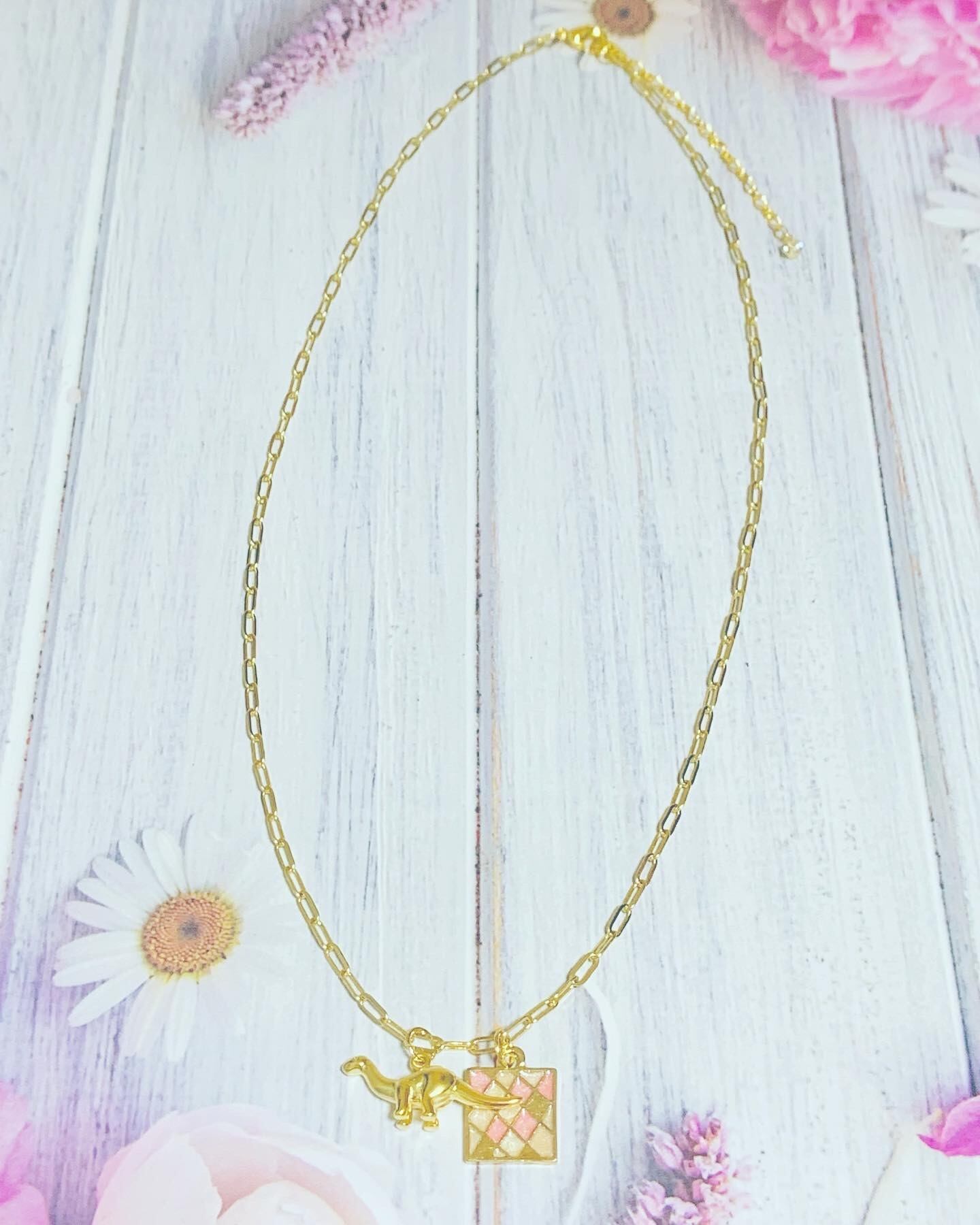 K18gp スクエアカラープレート付きの恐竜ネックレス(ブラキオサウルス)です。