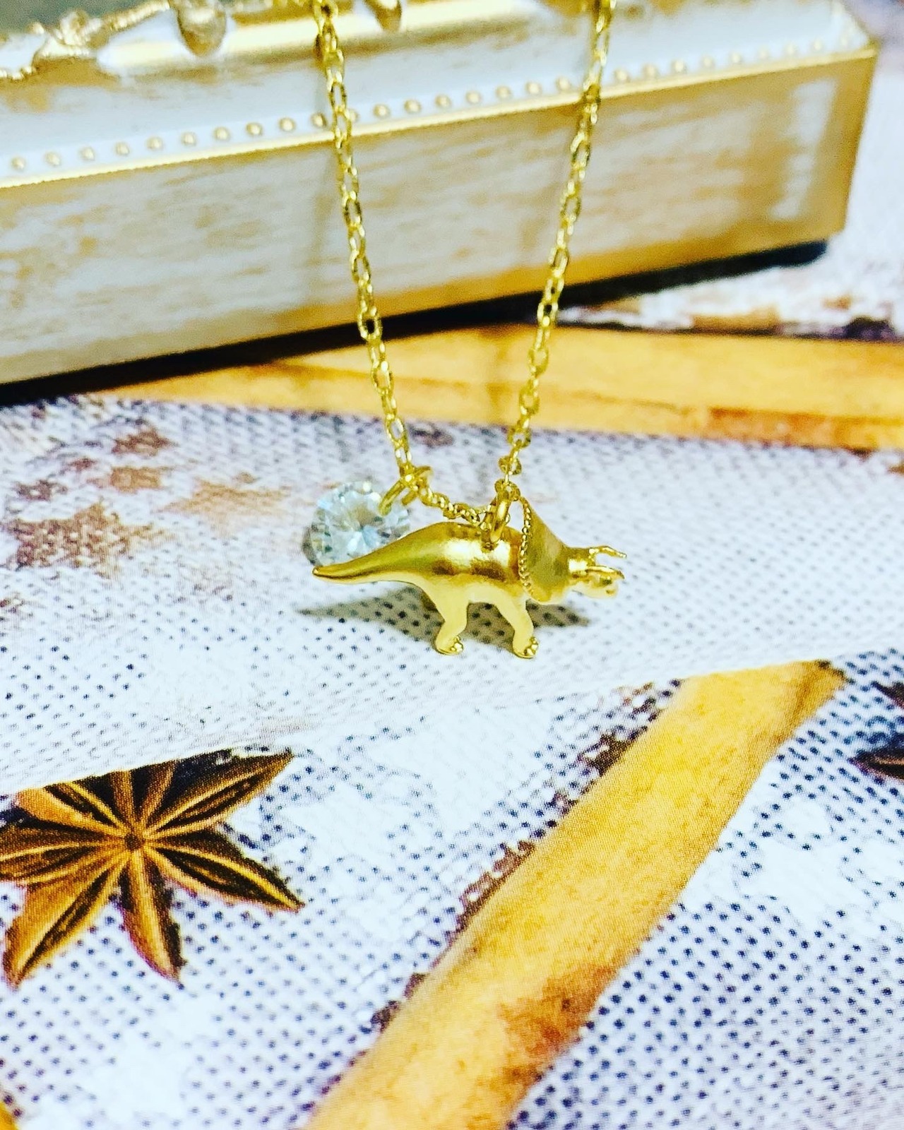K16gp キュービックジルコニア付きの恐竜ネックレス(トリケラトプスネックレス)です。