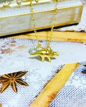 恐竜はどの角度から見ても立体的で可愛いデザイン。カラーはゴールド。