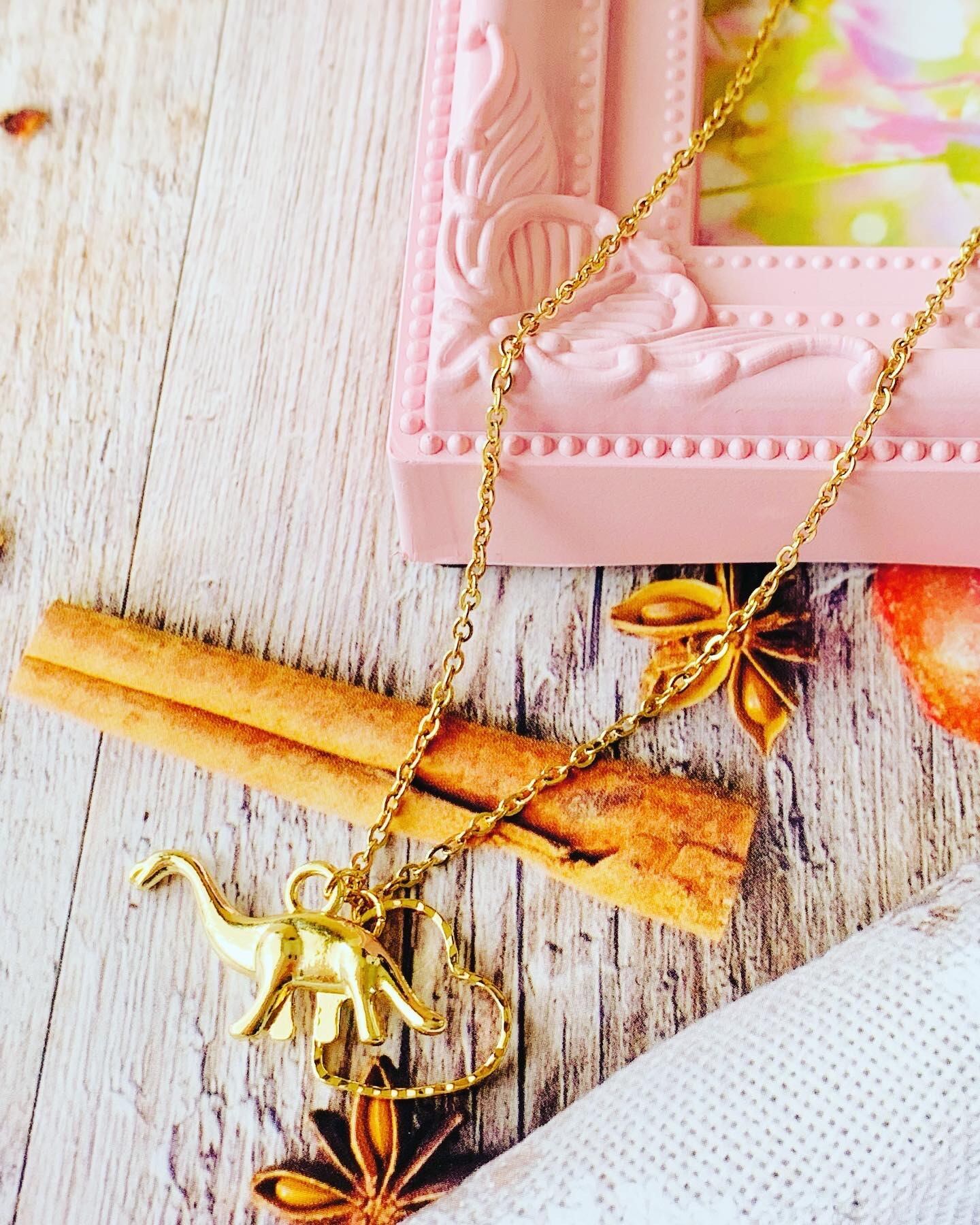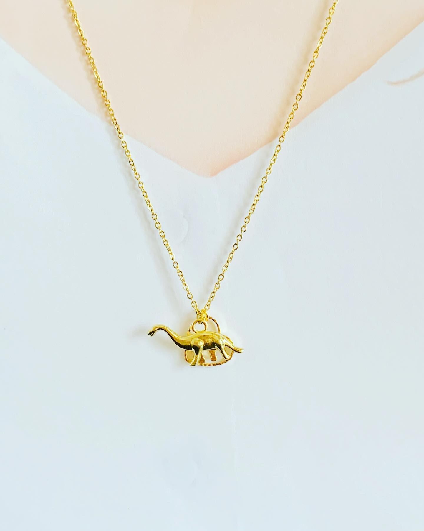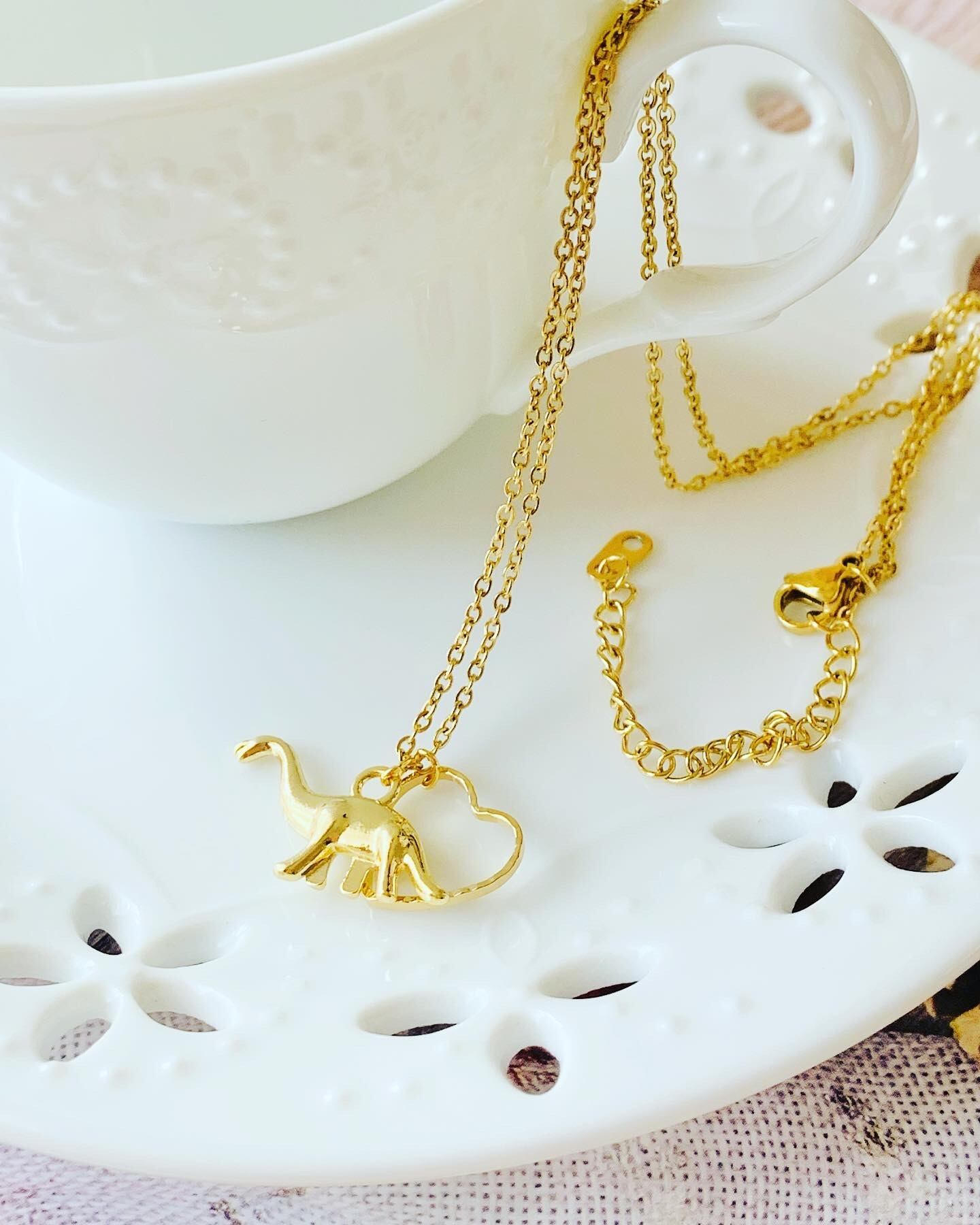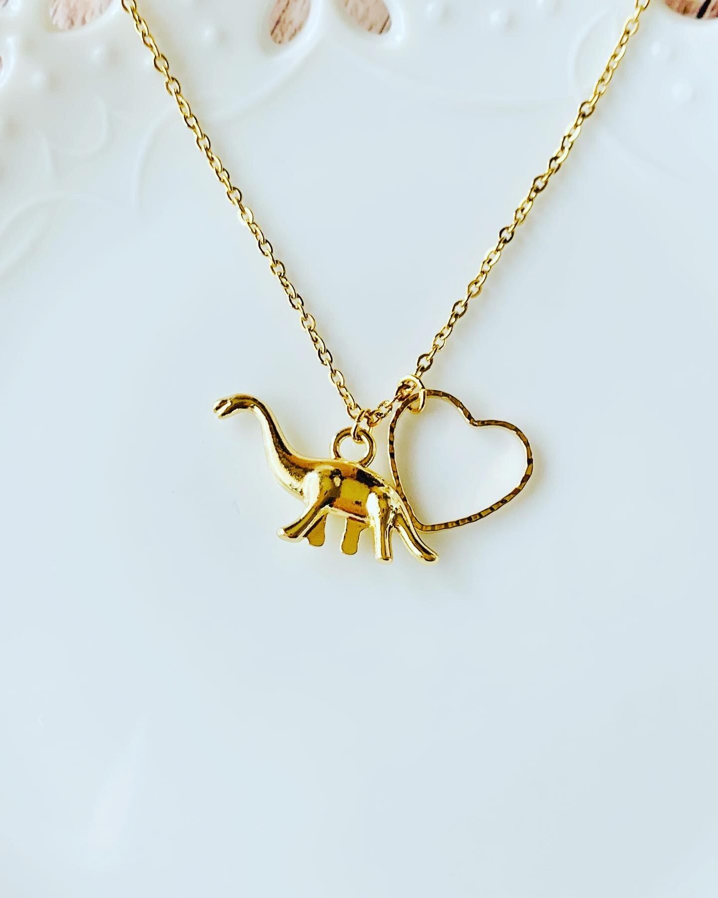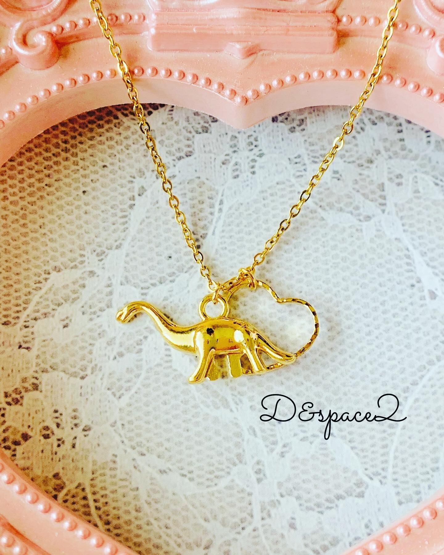 ハートチャーム付きの恐竜ネックレス(ブラキオサウルス)です。