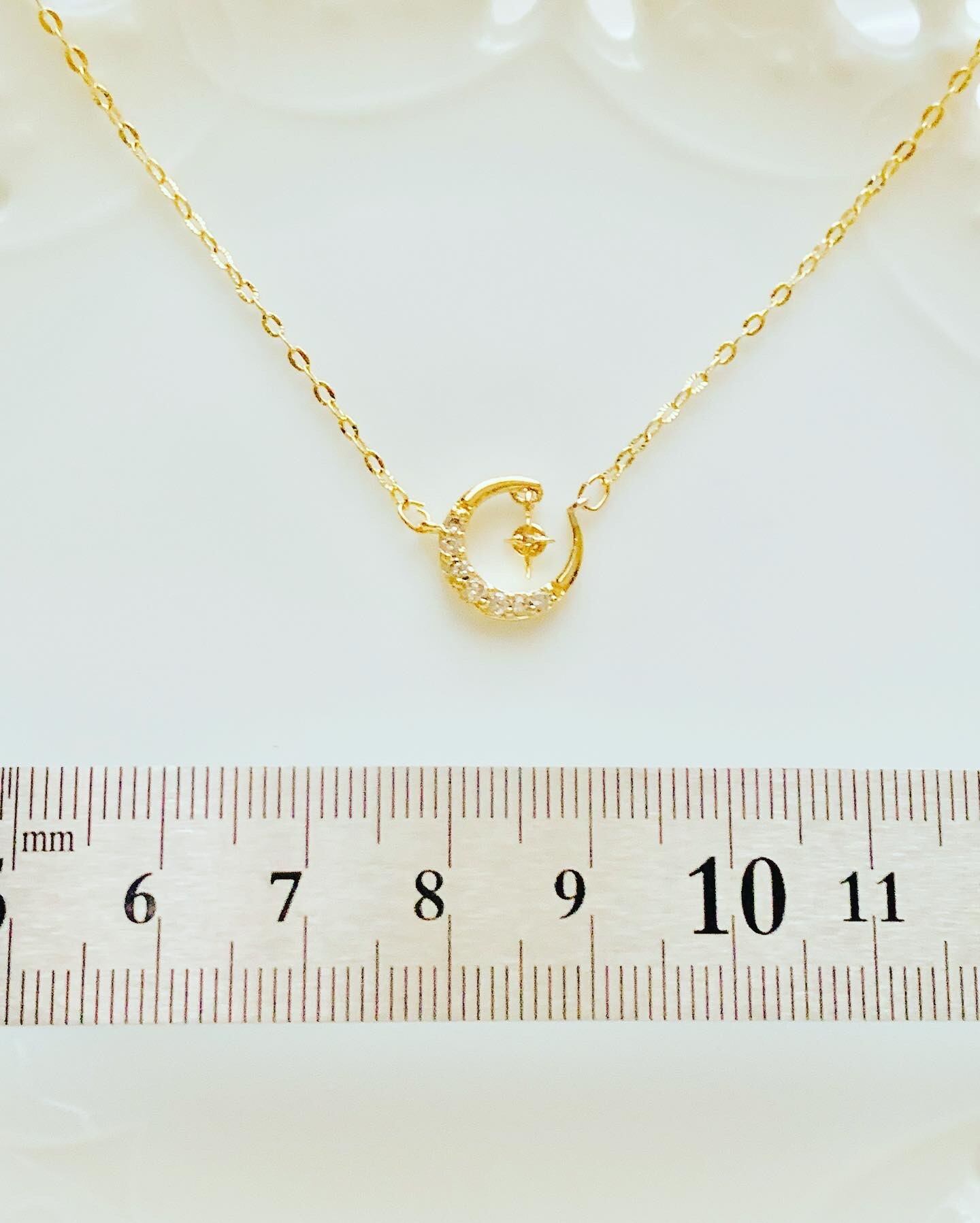 キュービックジルコニア付き月とスターモチーフのネックレスです。