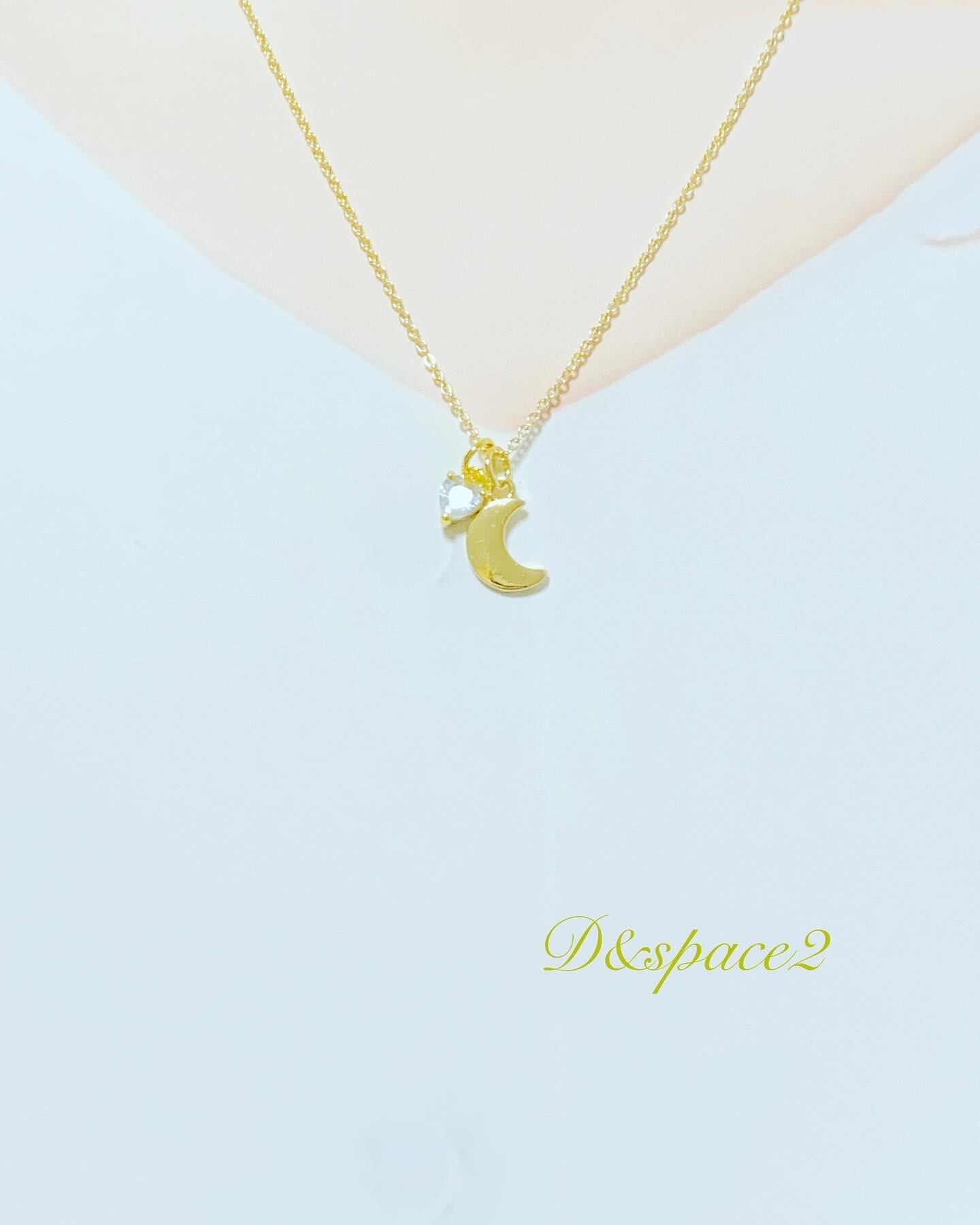 K18gp ハート型ジルコニア付き 月ネックレス