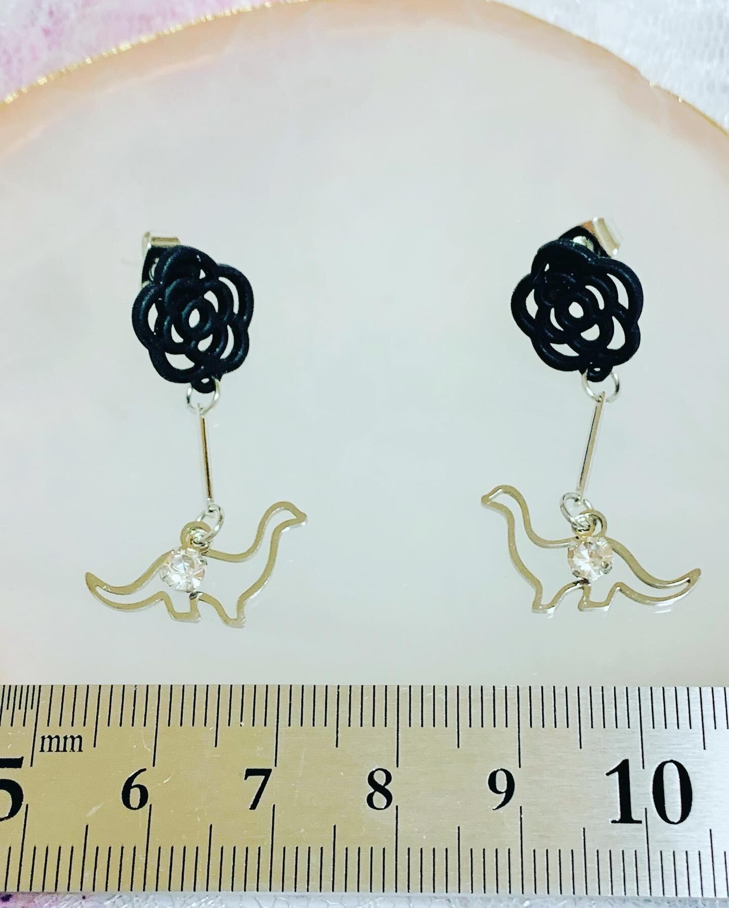 恐竜とラインストーンが耳元でゆらゆら揺れる高級感のあるおしゃれなデザイン。