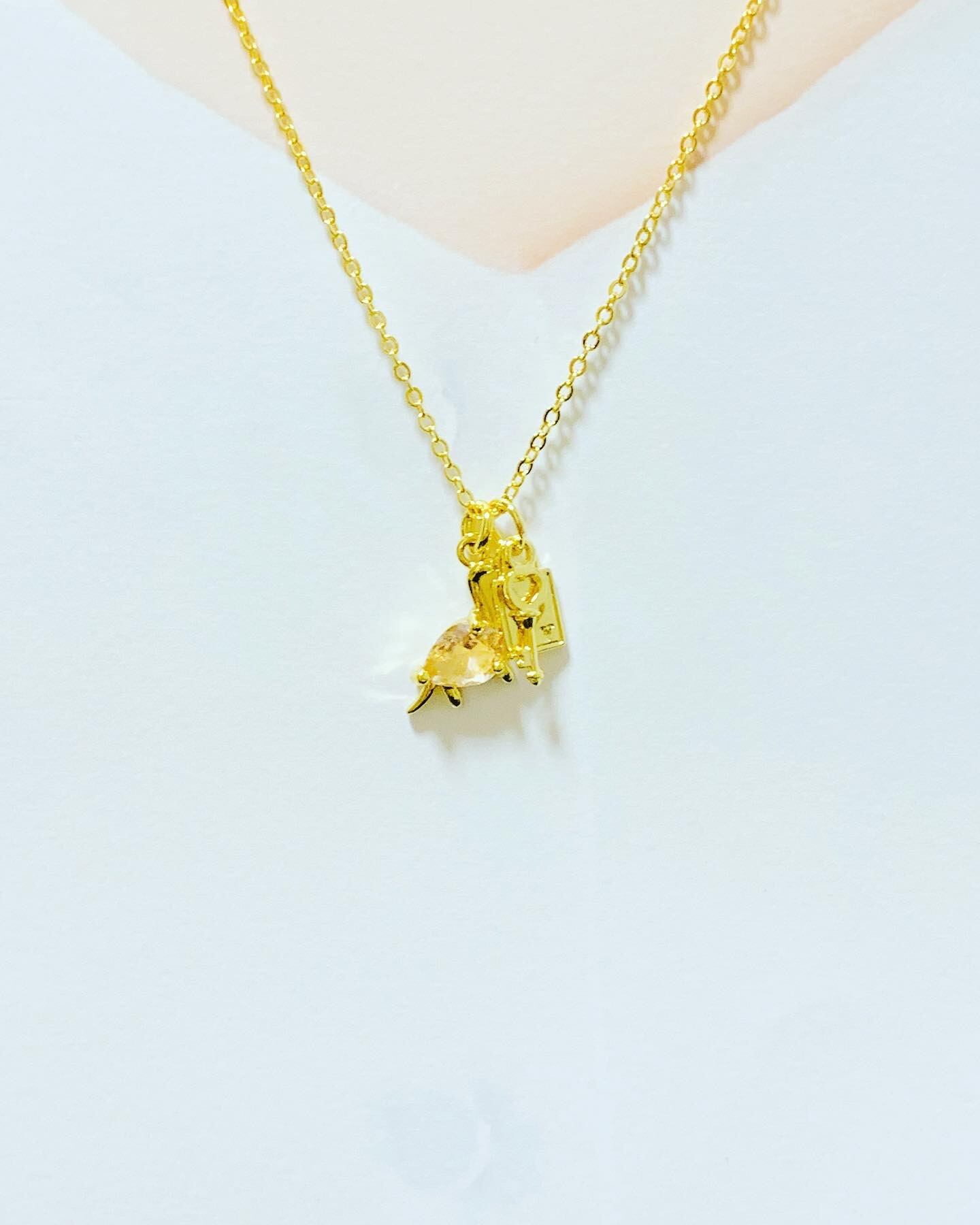 キュービックジルコニア付きの恐竜ネックレスです。カラーはゴールド。