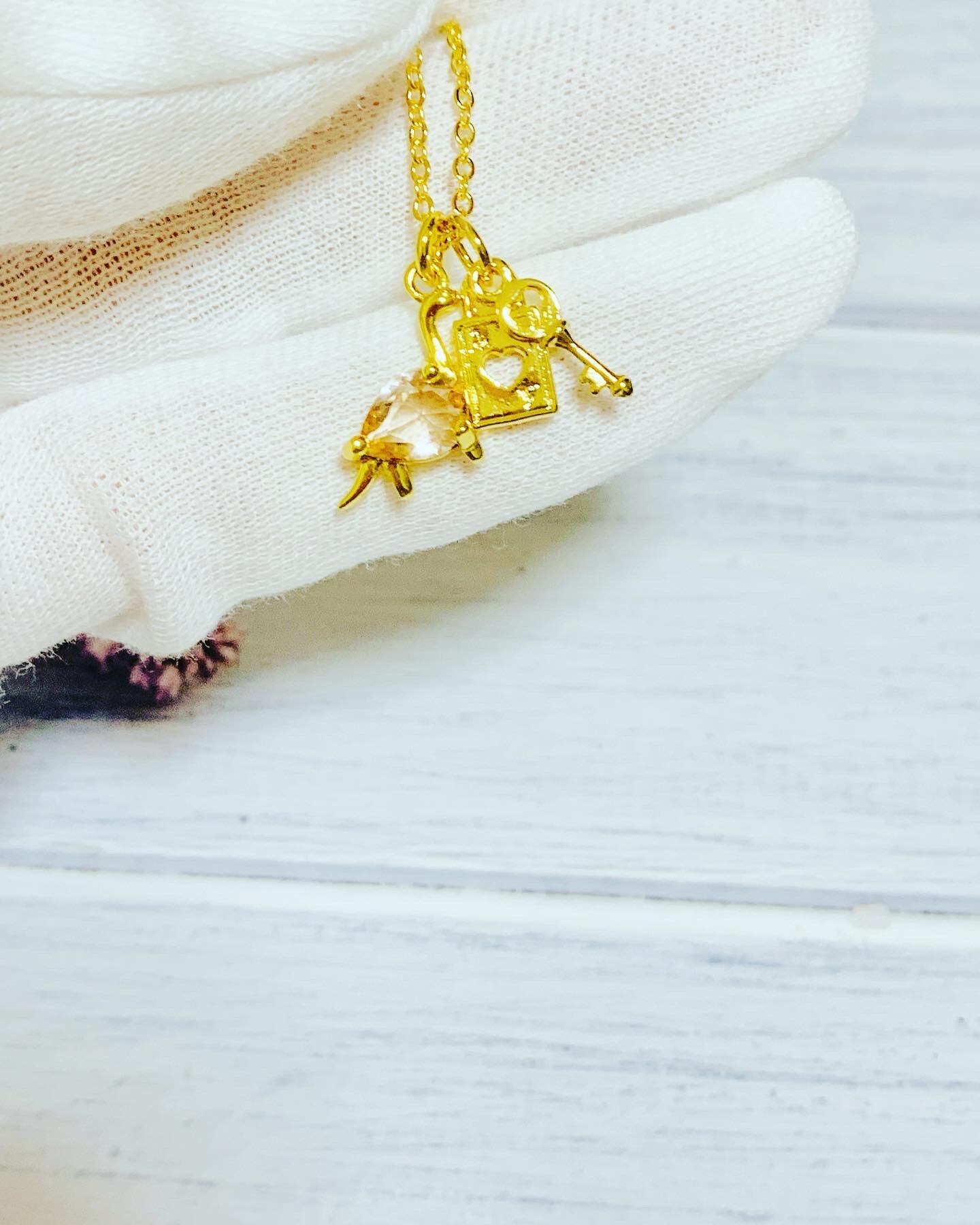 キー&トランプチャーム付き キュービックジルコニア恐竜ネックレス
