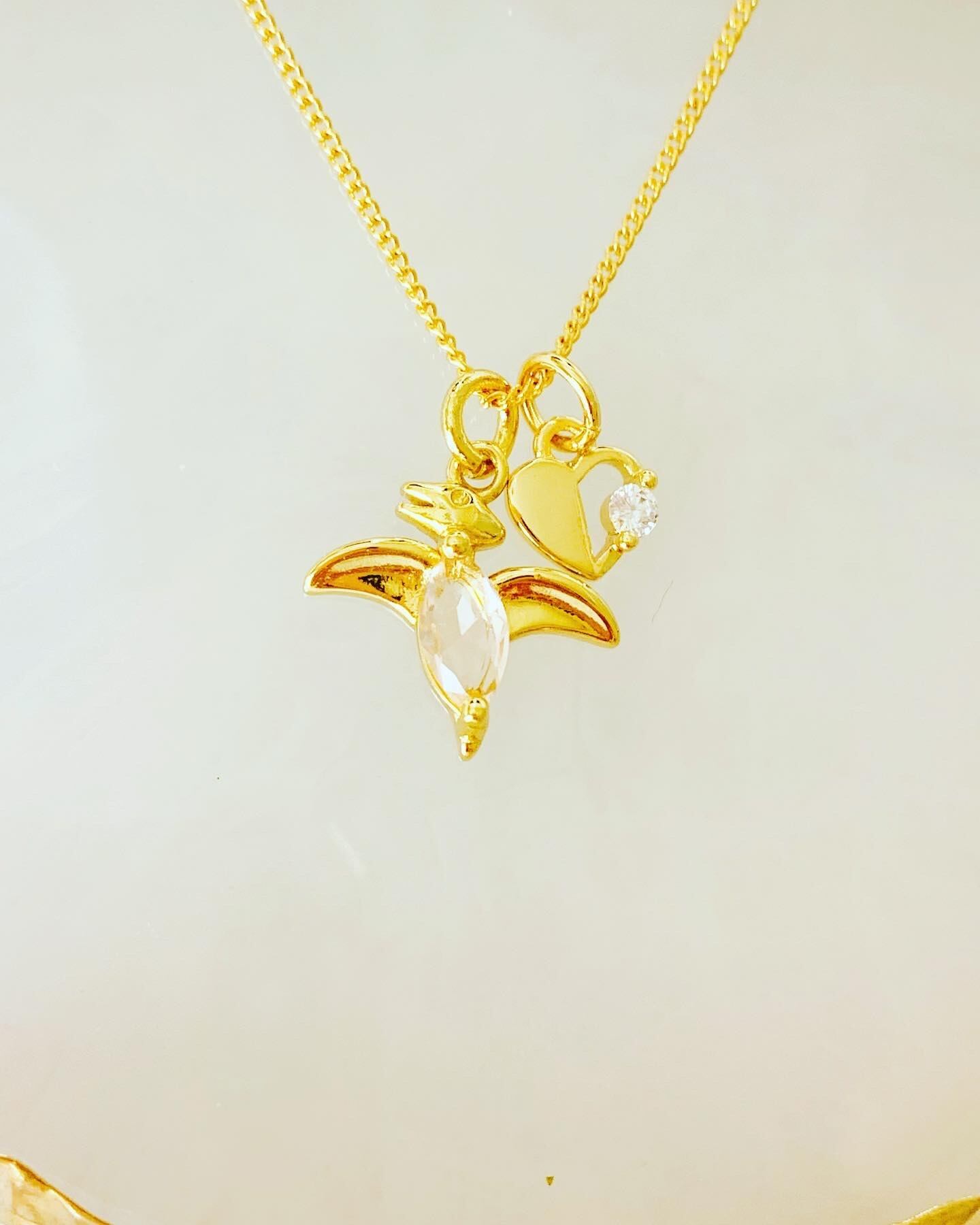 ハートチャームがプテラノドンを引き立てる大人可愛いデザイン。