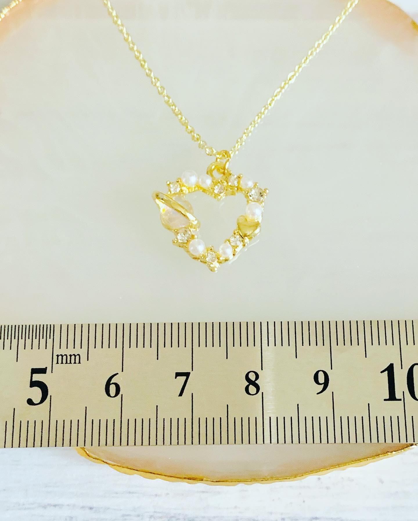 ハートの枠にハート・土星・パール・ストーンが付いたとても可愛いデザイン。