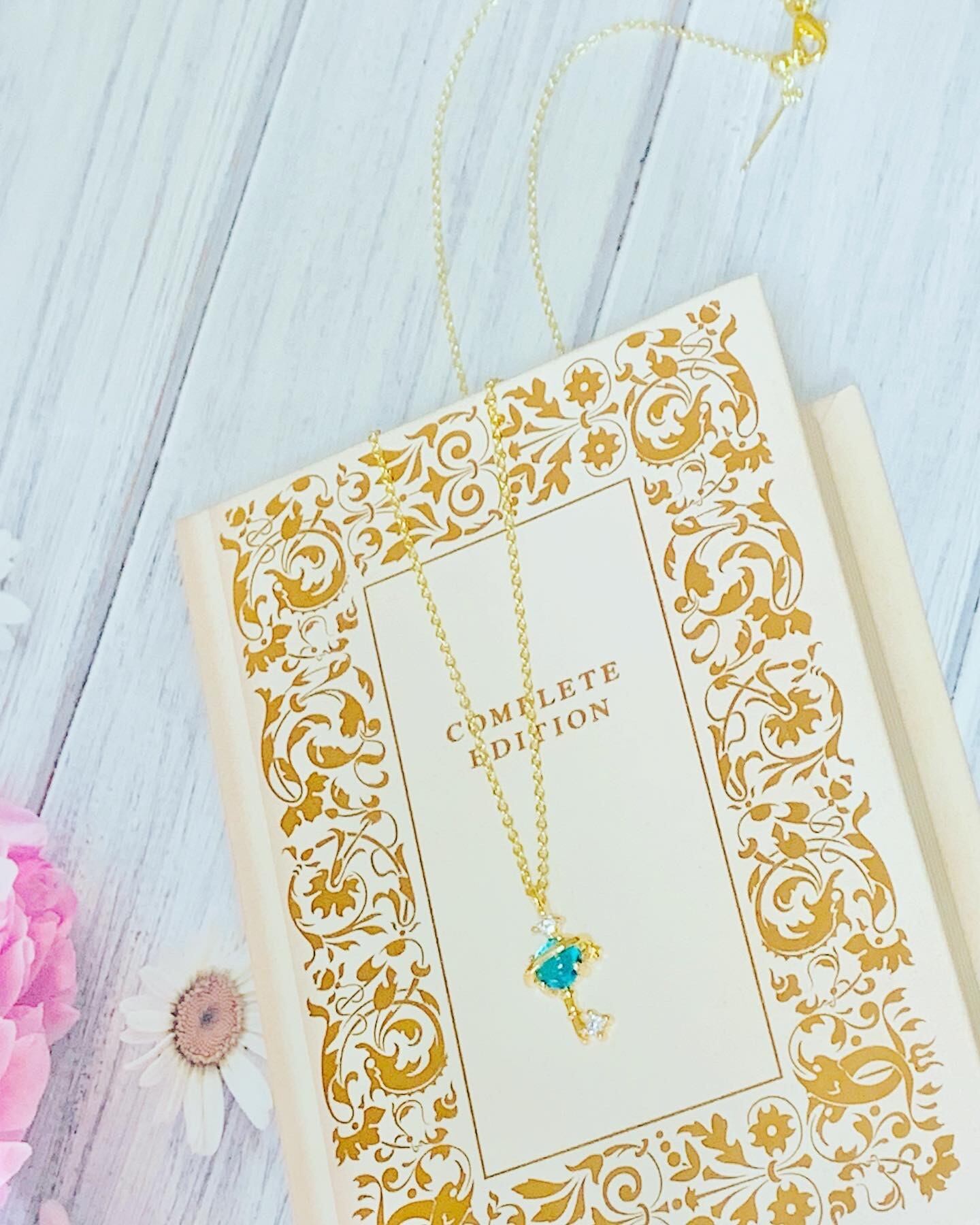 キュービックジルコニア付きの土星デザインキーチャームネックレスです。