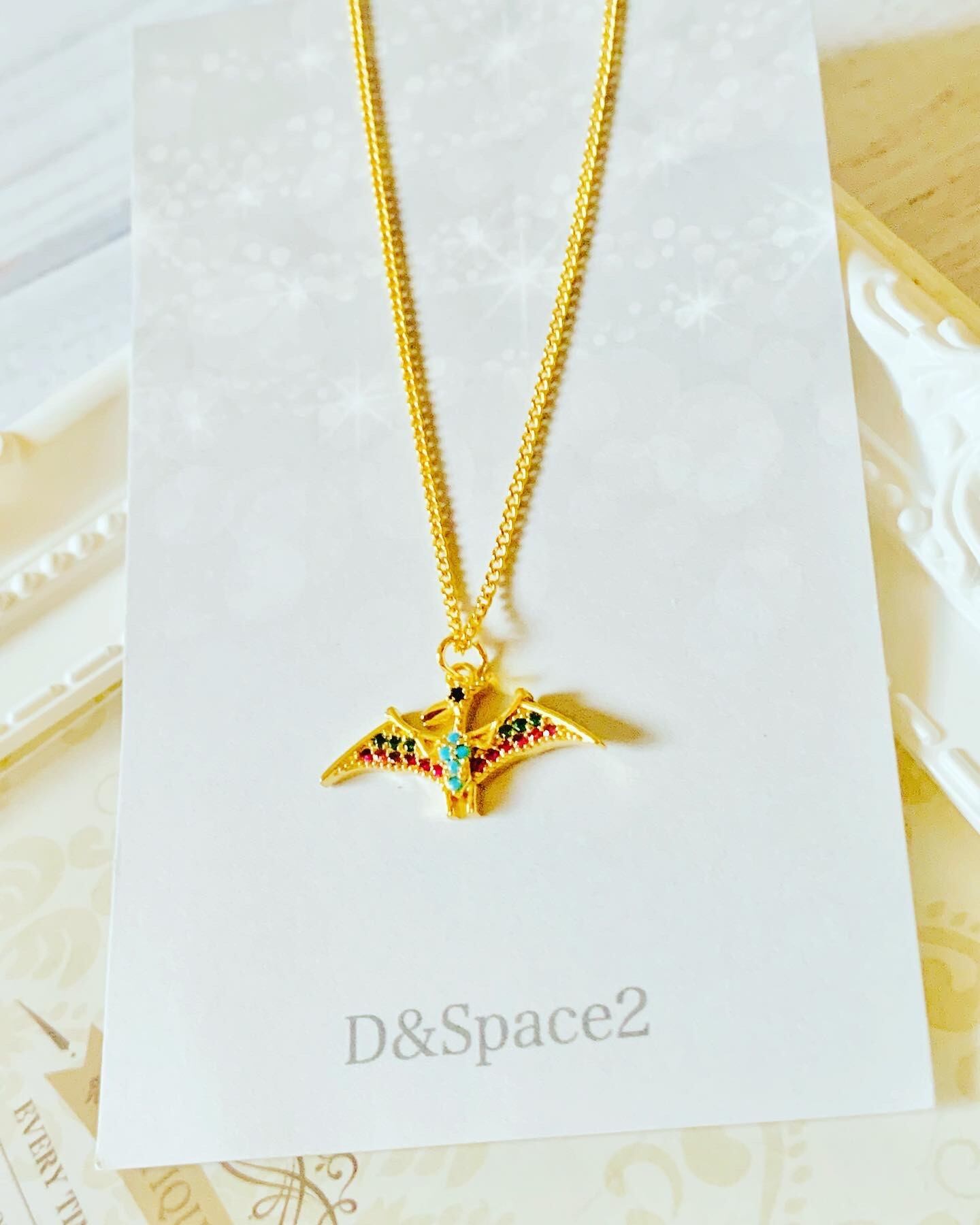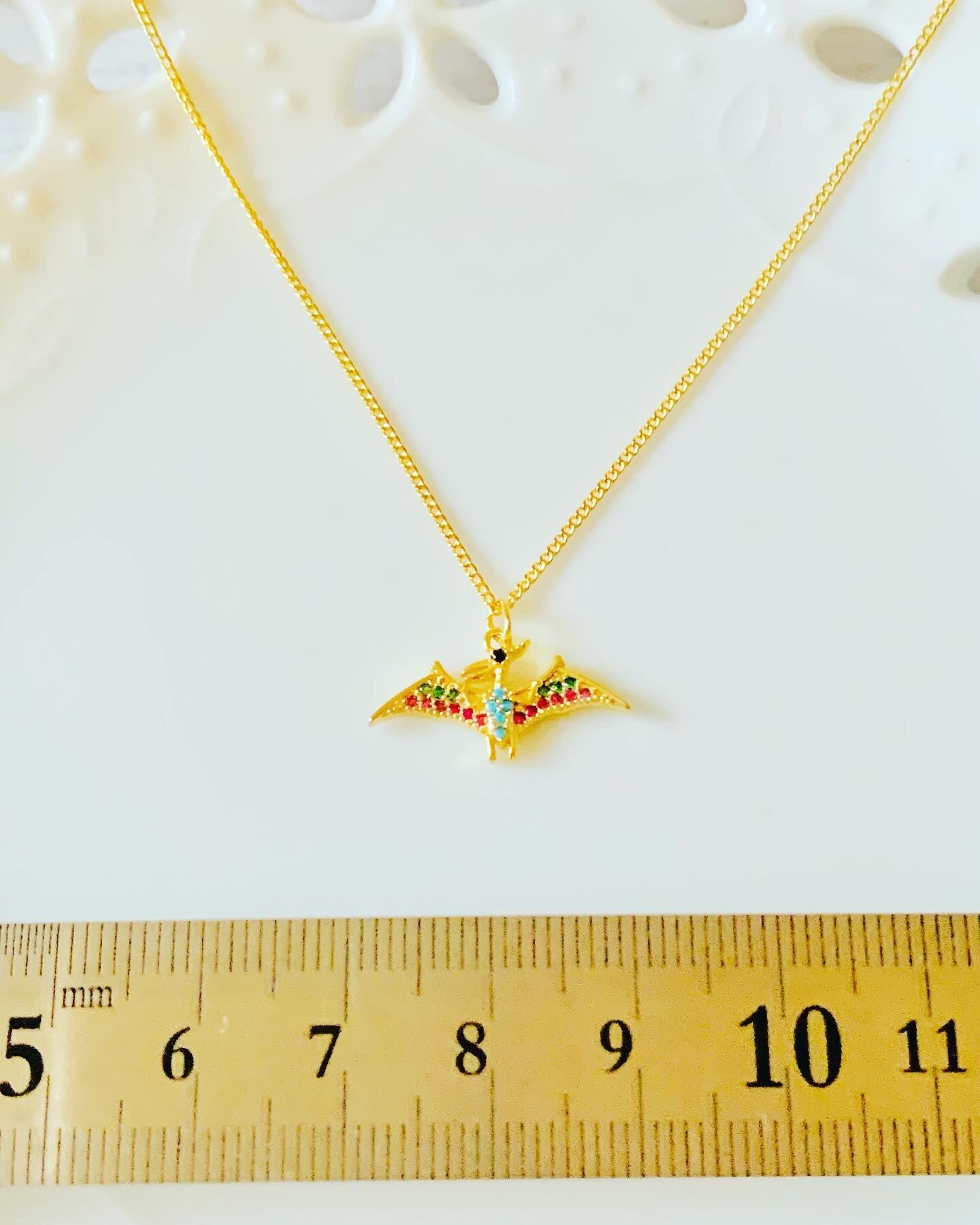 キュービックジルコニア付きのプテラノドンネックレスです。カラーはゴールド。