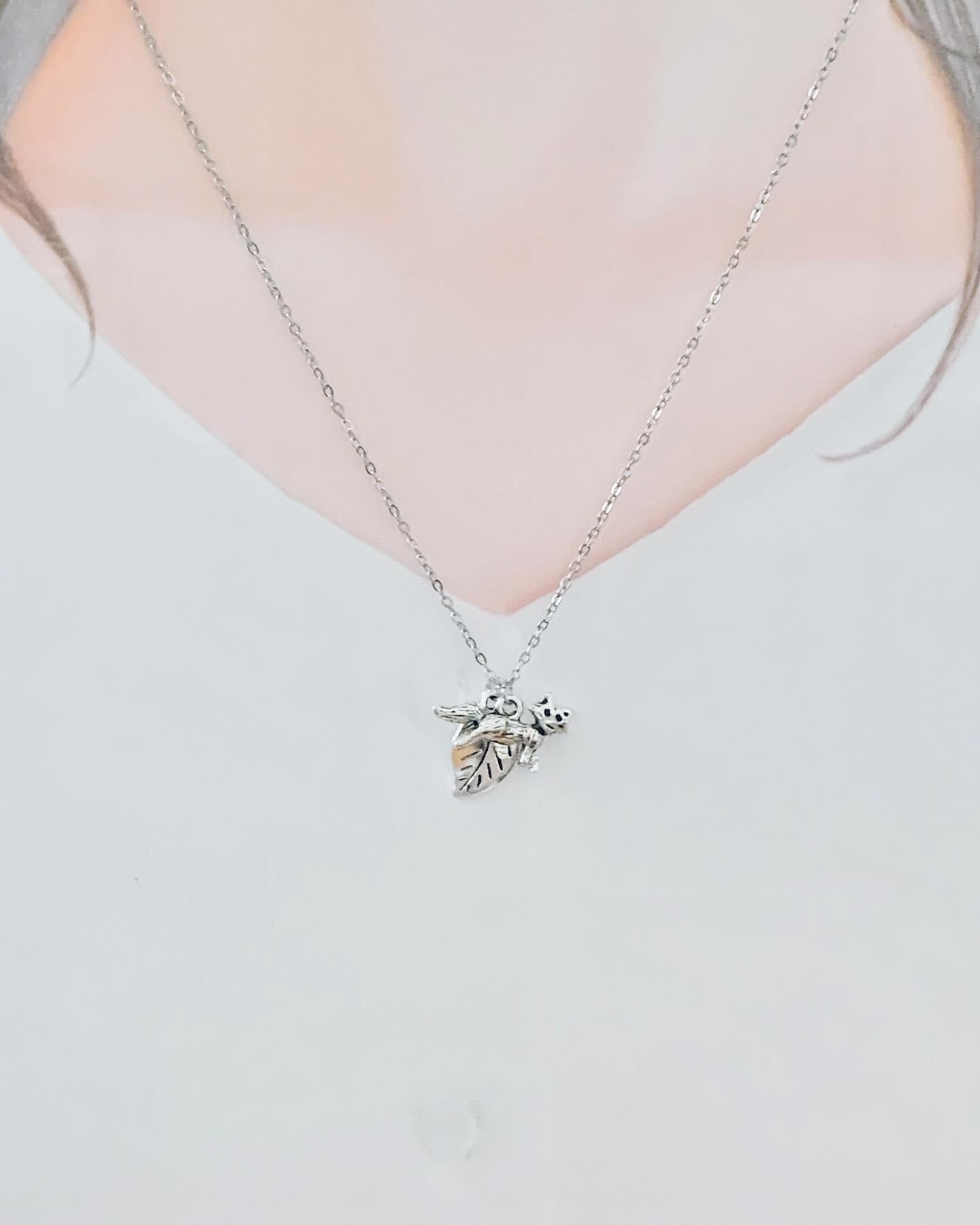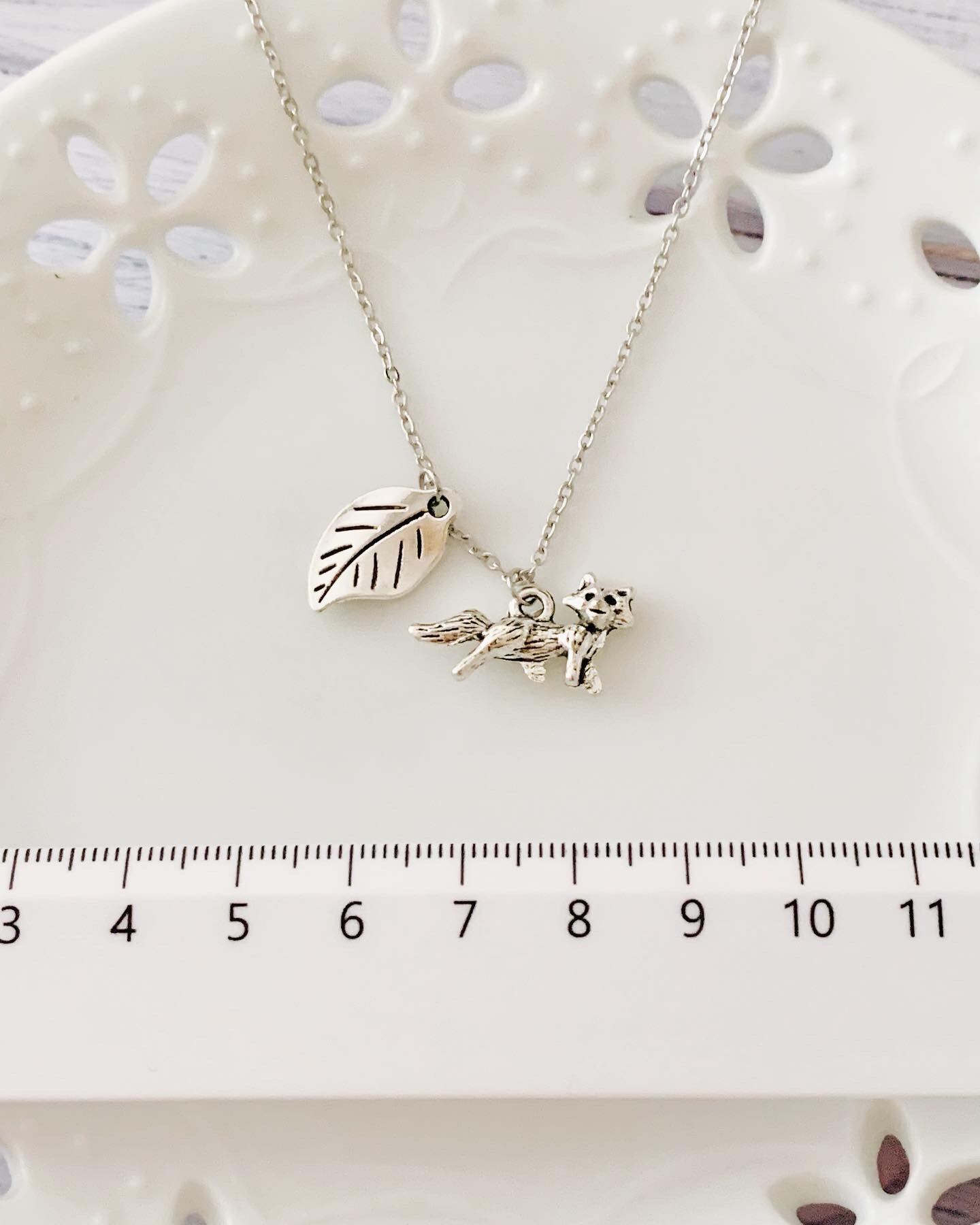 きつねとリーフ(葉っぱ)の可愛いカジュアルなネックレス。